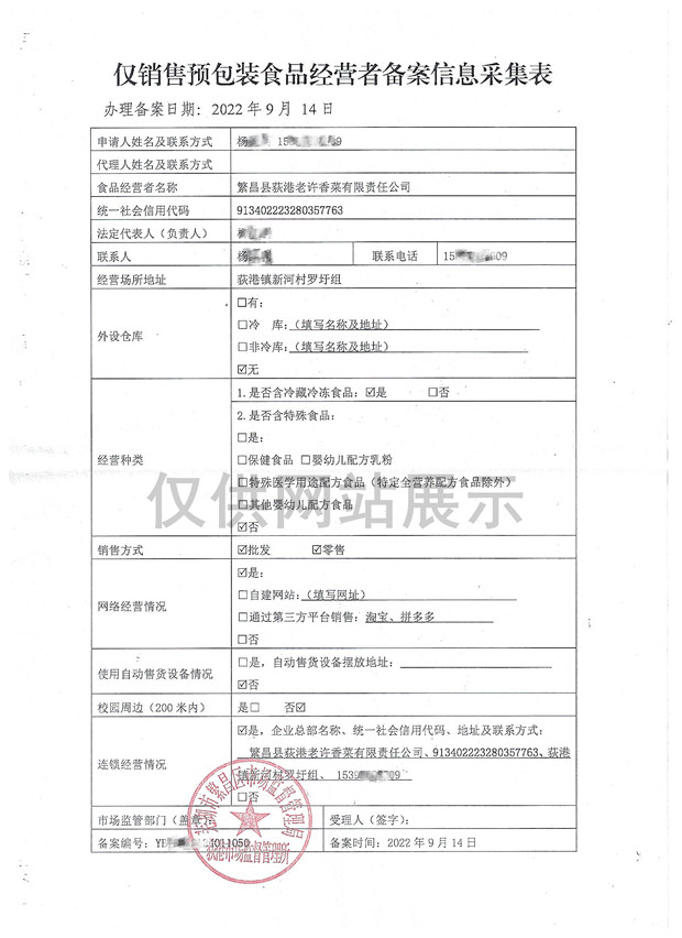 繁昌县荻港老许香菜有限责任公司
