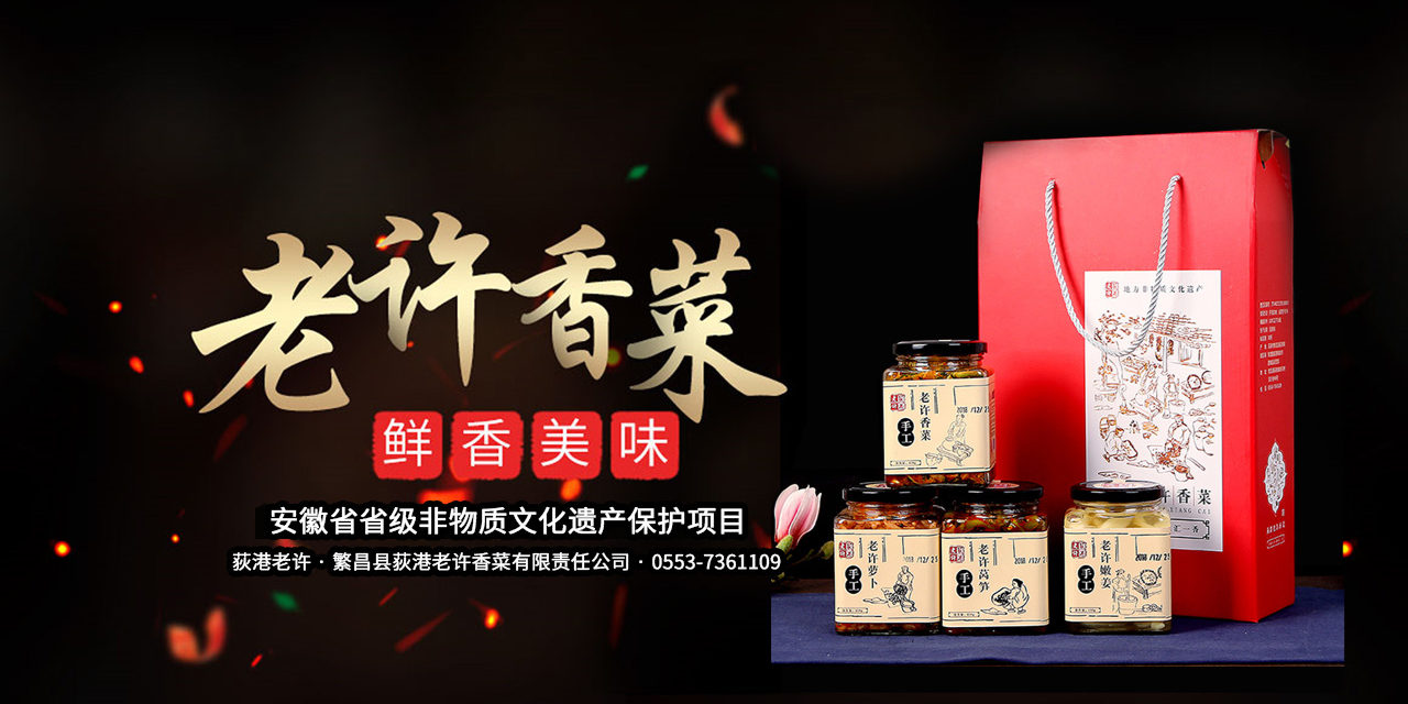 公司成立于2016年,位于安徽省繁昌县荻港镇新河村,紧邻板子矶风景区,是一家专业从事非遗技艺的食品加工、销售的单位。 老许香菜经过百年的探索研究和发展,口味独特时尚,深受广大客户赞誉。 公司蔬菜种植基地600余亩,采用订单农业模式,原材料实现标准化种植、专业化供应。香菜制作技艺从许氏一代始祖许天诺发明到现在,已有300多年的悠久历史。 至今仍沿袭这江水清洗、手工制作等传统制作工艺,以其独特风味已成为皖南地区代表性名优特产,《经济日报》、《人民网》央视二套、央视七套,上海卫视等知名媒体都曾予以报道。 公司已建立酒店超市直供、商业网点配送、电子商务营销“三位一体”的营销网络,销售区域线下基本覆盖全省,线上发往全国。