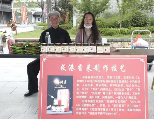 老许香菜在当地甚至周边等,已经非常有名气了,主要原因在于其中的制作技艺,同时也获得了多种荣誉,深受广大消费者的喜爱。在2020年6月13号的鸠兹古镇我们举办了非遗活动日,图为芜湖市第五批非遗证书发放现场。