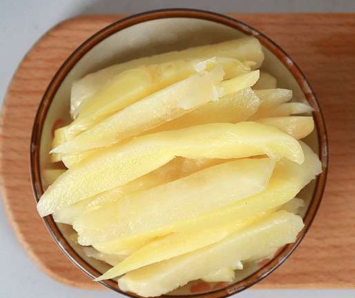 2、用盐腌制的姜片首先要除去水分,然后一定要用冷水漂洗,除去姜片的辛辣味,然后抓取或控制水分。