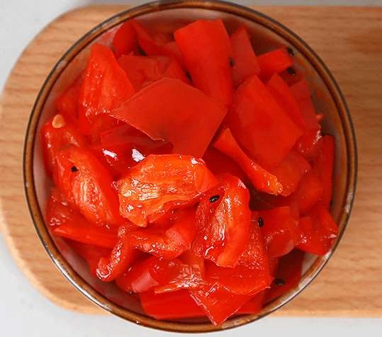当然了,可以有一种螃蟹味道加在里面,所以,辣椒平时也可以用螃蟹腌制,和红椒可以按四比一的比例,将其洗干净,红椒切成薄片,加入食盐,将盐从水中取出,再加糖、酱油和生姜等,白酒之后放一些辣椒和大蒜,腌制后拌匀,即可腌制10分钟几天左右,再将其微微辛辣,红椒在凉亭里会变淡,两者搭配食用,味道很好。
