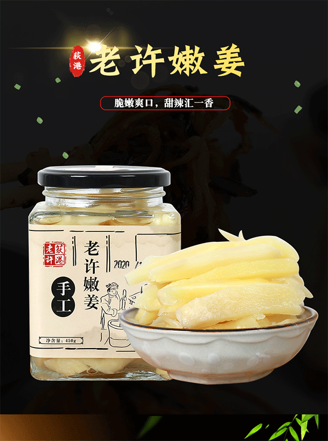 怎样做糖醋姜?首先将生姜片刮干净,切成薄片,放入盆中,加盐3小时。在此期间,滚动几次以将所有生姜片均匀腌制。将腌好的生姜片放入干净的瓶子中并夯实。夯实时间,有少量水。倒水入水,糖和醋。醋不要超过生姜片。您可以在冰箱中放置2至3天后食用。醋应为普通米醋或玫瑰白醋。如果使用醋精和混合醋,将不会有任何相关影响。事先准备原料,切去生姜皮,用美食刀切成薄片,用盐腌1晚,然后在盐水中浸泡2天,将生姜片洗净,榨干,放入生姜片在锅中加少许水加热,煮沸,关火,加入少量红曲米粉,加入适量的醋和适量的糖。冷却后,将其放入无油无水的容器中,腌制1天。可以吃这样的糖醋姜。