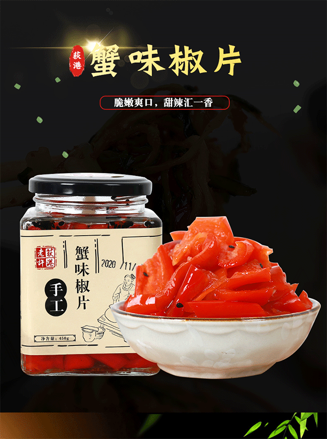 繁昌县荻港老许香菜有限责任公司是中国酱腌菜行业的优质企业,专业的酱腌菜食品生产和营销企业,是以农产品大豆、小麦及各类蔬菜为主要加工原料的生产酱腌菜、酱类调味品的专业化公司。历史悠久,被认定为认定为非物质文化遗产,目前生产的产品涵盖老许香菜、蟹子红椒、香辣莴笋、沙土姜蒜、萝卜、风味辣酱等八大系列20多种产品。