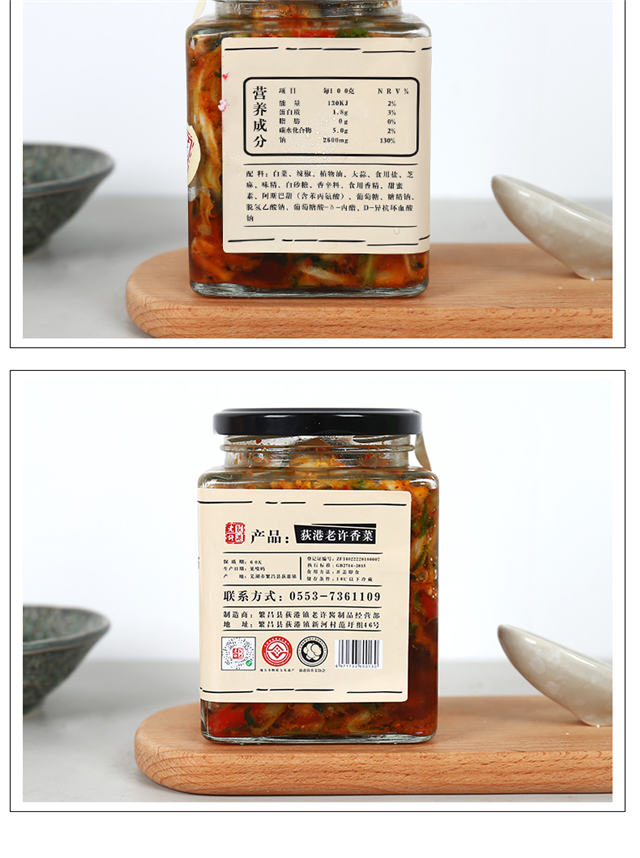 公司蔬菜种植基地1000余亩,采用订单农业模式,原材料实现标准化种植、专业化供应。公司旗下拥有老许香菜、蟹子红椒、香辣莴笋、沙土姜蒜、萝卜、风味辣酱等八大系列20多种产品,口味独特,堪称一绝。老许香菜制作技艺已有300多年的悠久历史,至今仍沿袭这清洗、手工制作等传统制作工艺,以其独特风味已成为皖南地区代表性名优特产,《经济日报》、《人民网》等知名媒体都曾予以报道。 公司已建立酒店超市直供、商业网点配送、电子商务营销“三位一体”的营销网络,年销售额逐年上升。