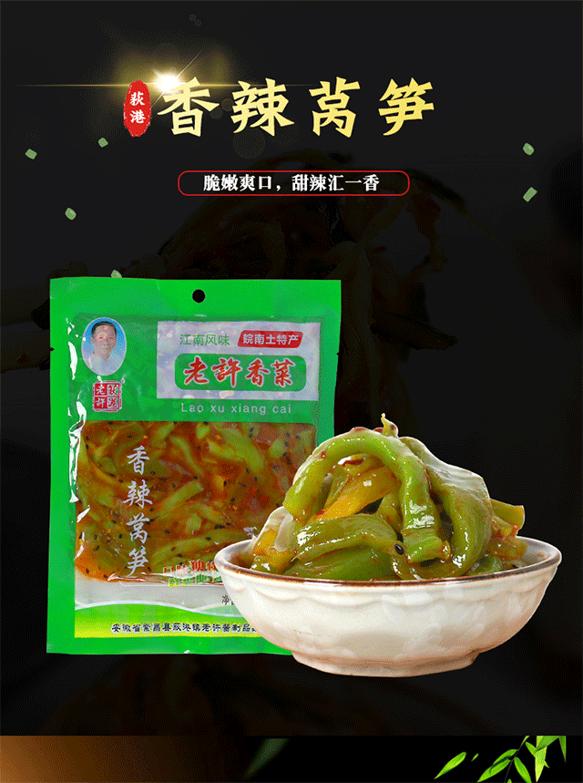 繁昌县荻港老许香菜有限公司成立于2016年,位于安徽省繁昌县荻港镇新河村,紧邻板子矶风景区,是一家专业从事酱腌菜食品加工、销售的企业。老许香菜经过八十多年的探索研究和发展,口味独特时尚,深受广大客户赞誉。老许香菜2009年被繁昌县认定为非物质文化遗产、2019年被认定为芜湖市非物质文化遗产。2011年北京经济日报社副社长、记者李洪波在各级媒体陪同下专程登门采访;2013年芜湖电视台专程录制老许香菜制作过程,在电视台播放;2014年由繁昌餐饮协会大江晚报记者登门品尝并推荐为荻港“一镇一味”品牌。2017年度央视展播品牌,芜湖市知名商标。2019年被芜湖市餐饮行业协会、芜湖市旅游协会评为“游芜湖不得不吃的小吃”。