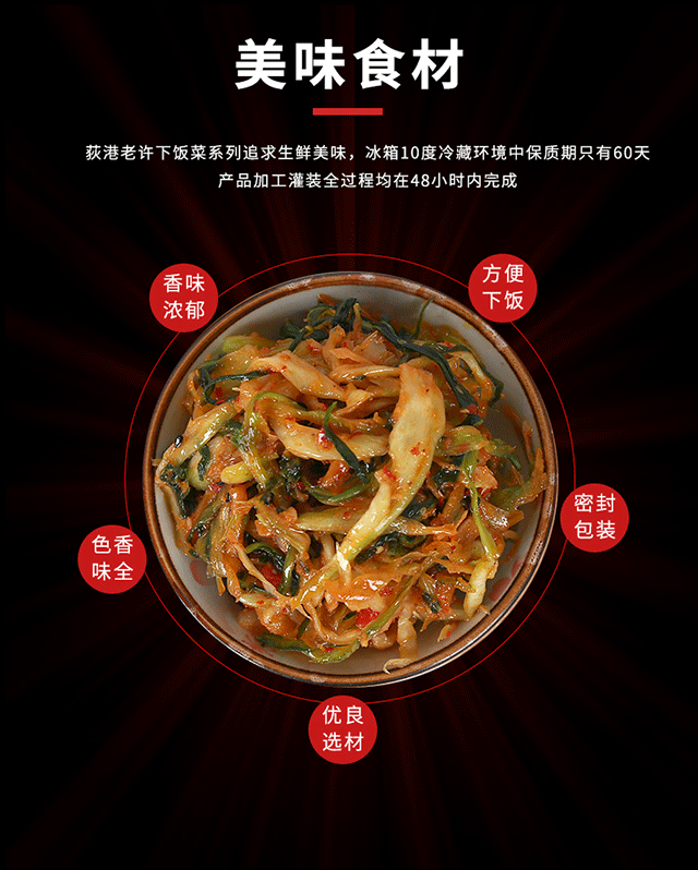 老许香菜是繁昌县荻港老许香菜有限责任公司招牌下饭菜,凭借美味健康征服了广大朋友的味蕾,欢迎新老客户购买品尝!